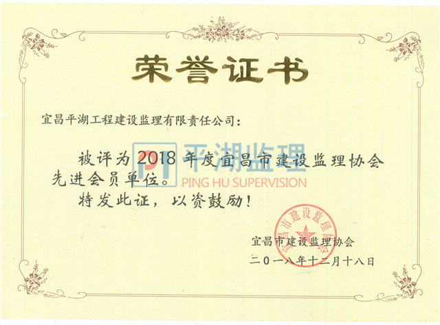 2018年度宜昌市先進監(jiān)理企業(yè)
