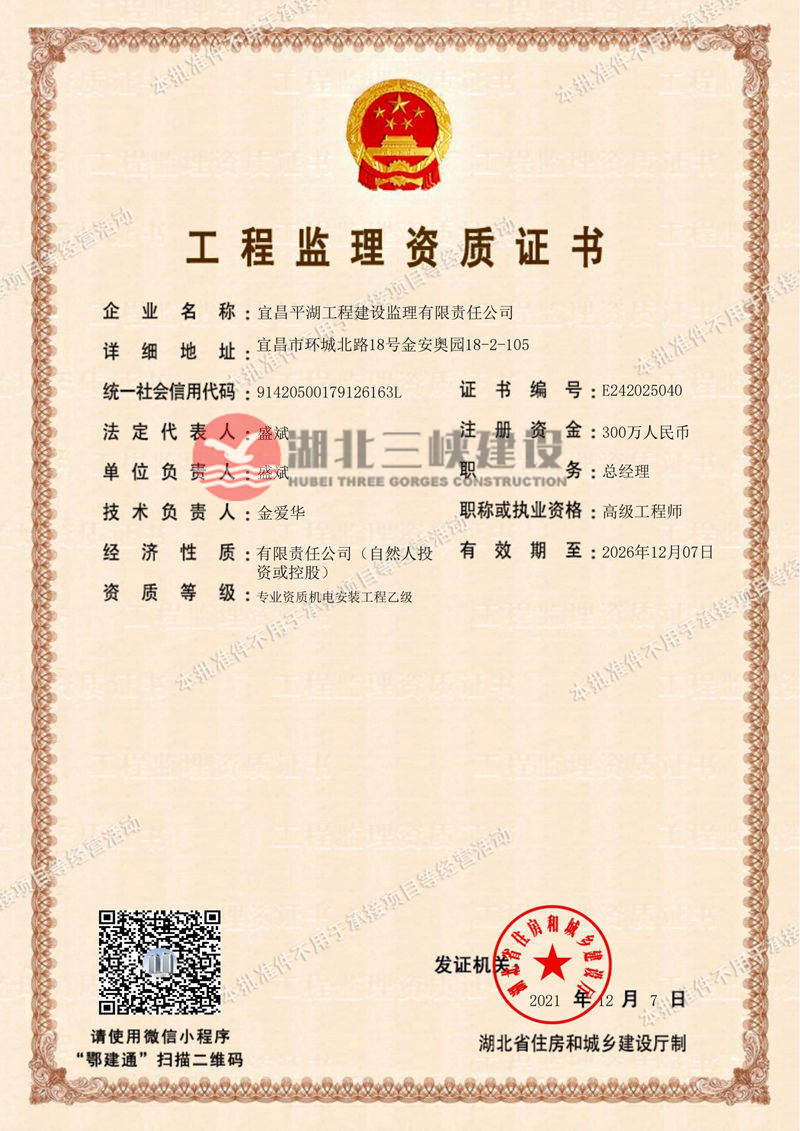 湖北三峽建設(shè)項(xiàng)目管理股份有限公司營(yíng)業(yè)執(zhí)照
